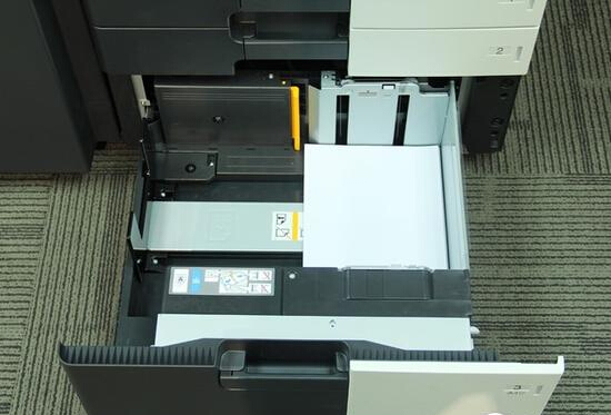 柯尼卡美能達C658標配2個500頁紙盒和手送紙盤,選配更支持側置的大容量紙柜,最高紙張容量達到6650頁。充足的紙張容量,確保高速輸出的連續性。