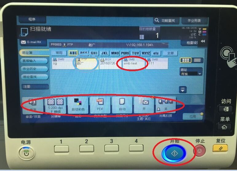 5)選中之前所創(chuàng)建的SMB項(xiàng),設(shè)置好掃描需求后點(diǎn)擊右下方發(fā)光的藍(lán)色開(kāi)始鍵,回到電腦設(shè)置的文件夾中查找對(duì)于圖像即可