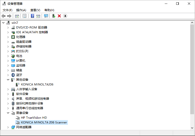 4)選擇 KONICA MINOLTA 206 TWAIN,并點擊自定義插入