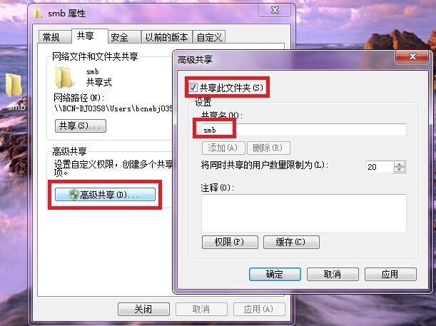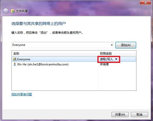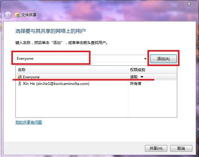1)PC端設(shè)置共享文件夾,共享設(shè)置everyone的讀取和寫入權(quán)